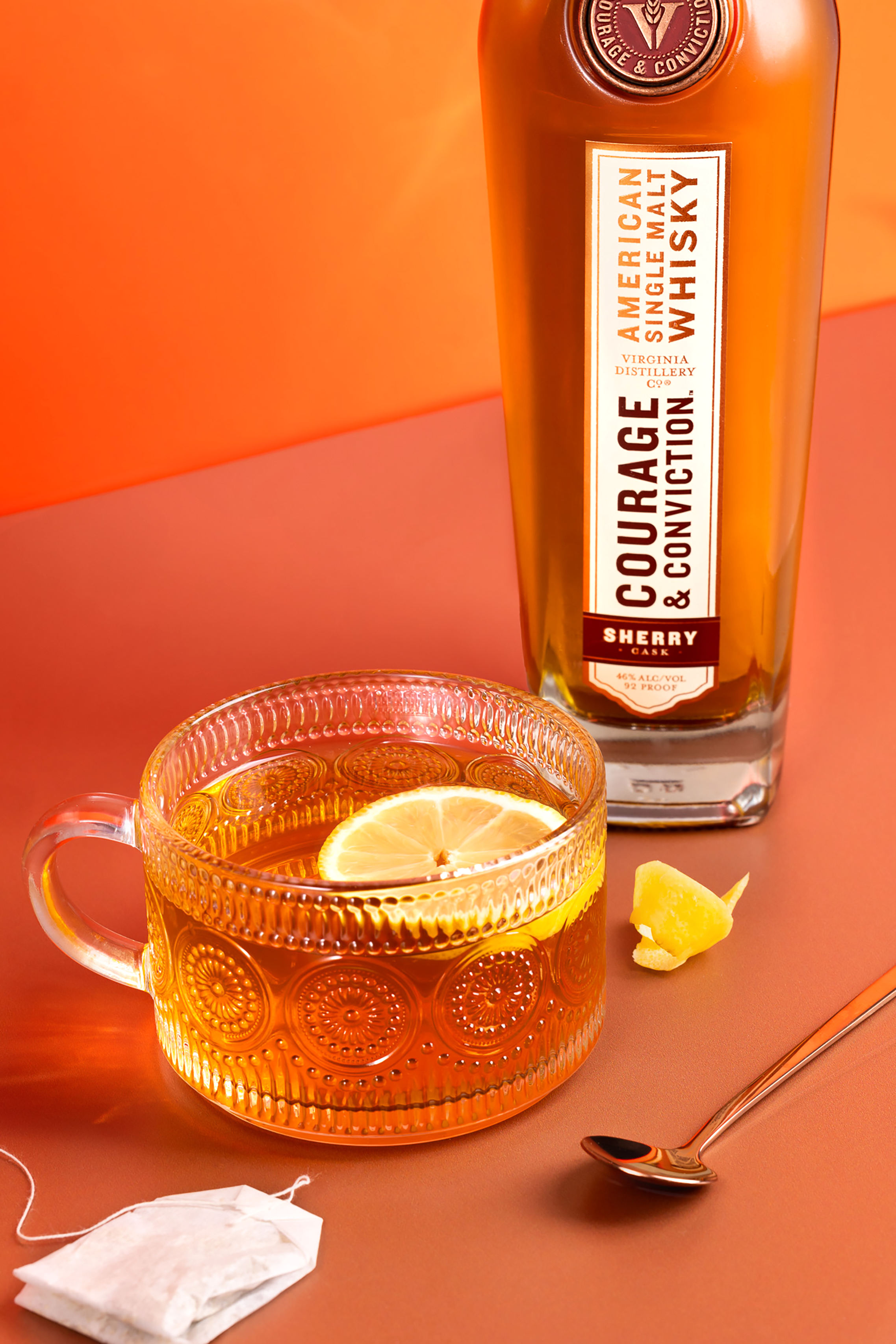 - 1.5 oz Courage & Conviction Sherry Cask: Adds a rich, nutty layer that complements the herbal tea.