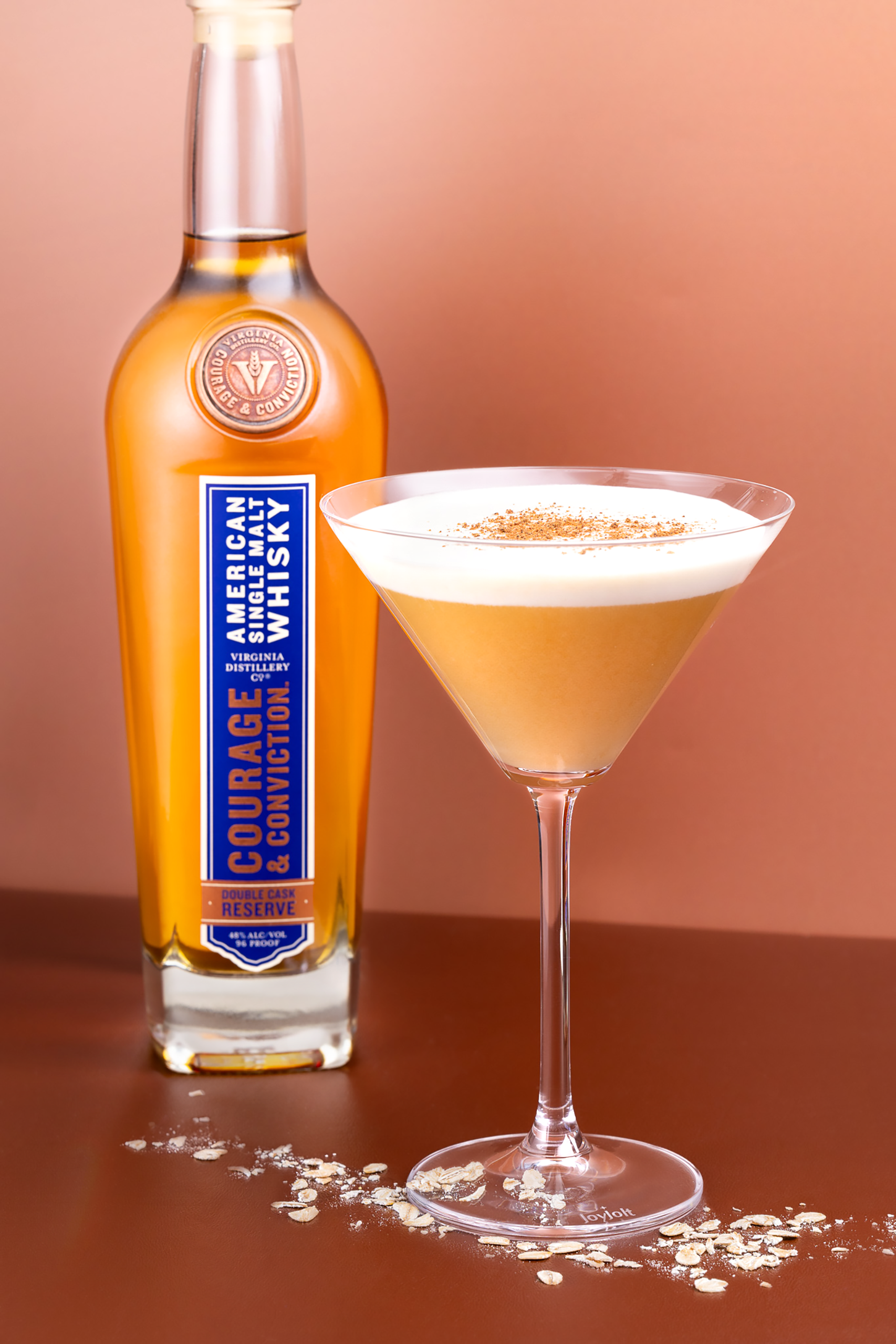 - 1.5 oz Courage & Conviction Double Cask Reserve: A whisky that layers nutty and tropical fruit notes beneath butterscotch and baking spices.