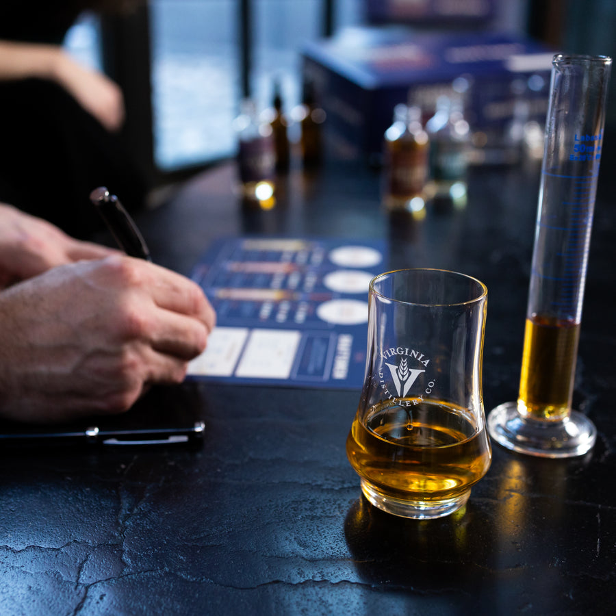 Using your dropper and glass, you'll create a unique blend of American Single Malt Whisky using our three fully matured cask samples. Once you discover the blend that speaks to you, simply record your percentages in 10% increments on your tasting mat.